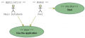 <uml> skinparam usecaseBackgroundColor DarkSeaGreen skinparam usecaseArrowColor Olive skinparam actorBorderColor black skinparam usecaseBorderColor DarkSlateGray skinparam usecaseActorFontName Courier User << Human >> :Main Database: as MySql << Application >> (Start) << One Shot >> (Use the application) as (Use) << Main >> User -> (Start) User --> (Use) MySql --> (Use) </uml>
